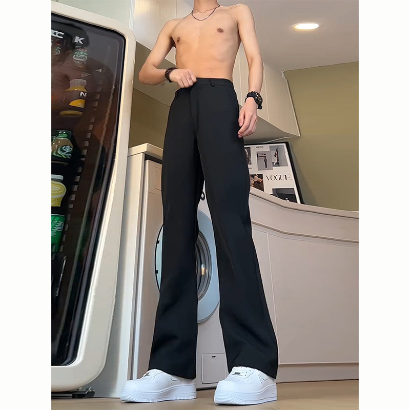 Black straight pants men's summer high waist slim scimitar flared trousers